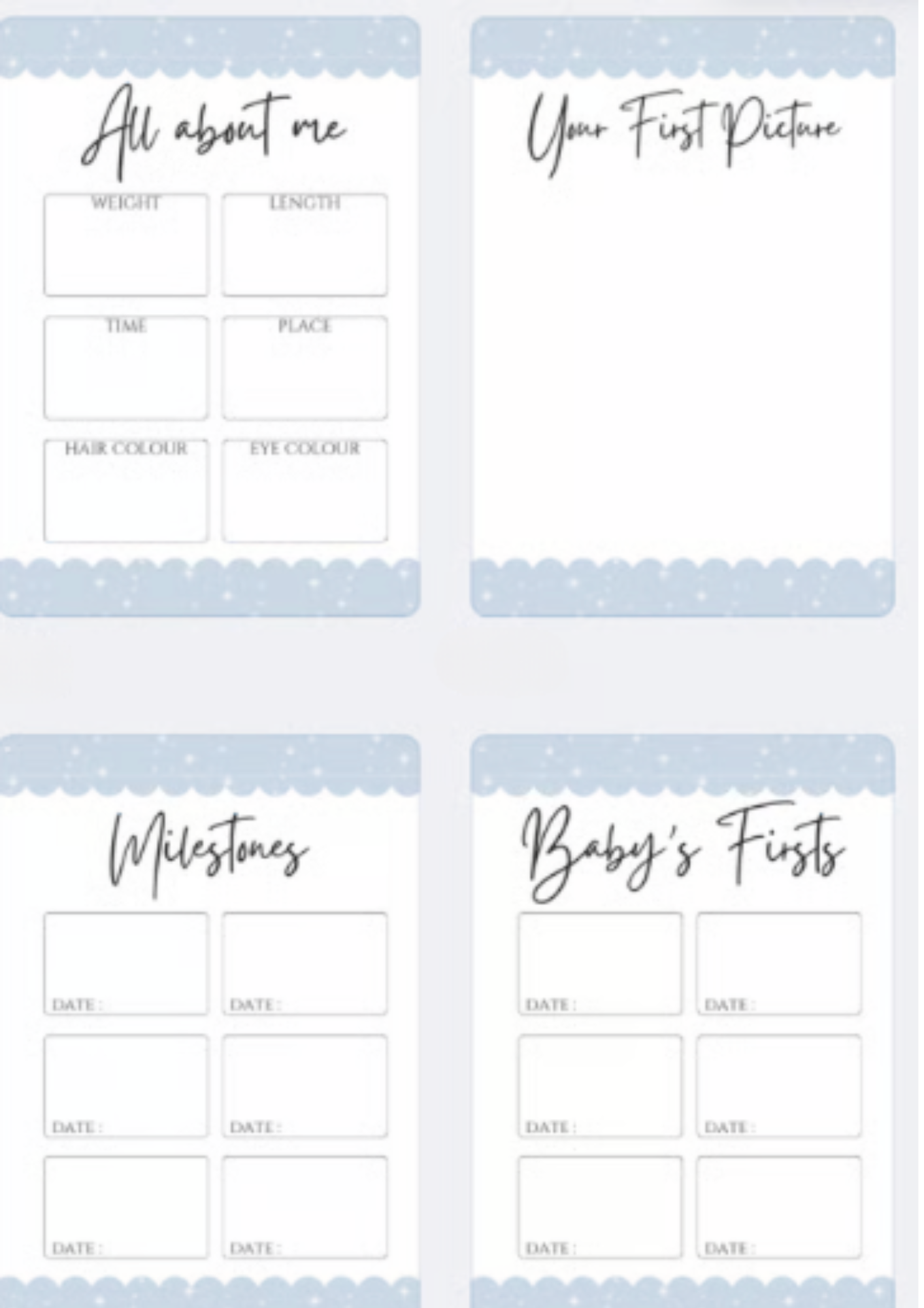 We all love capturing those first precious moments and what better way to by creating a first year book from the start of their journey. Spaces to add photos and write in milestones/Statistics