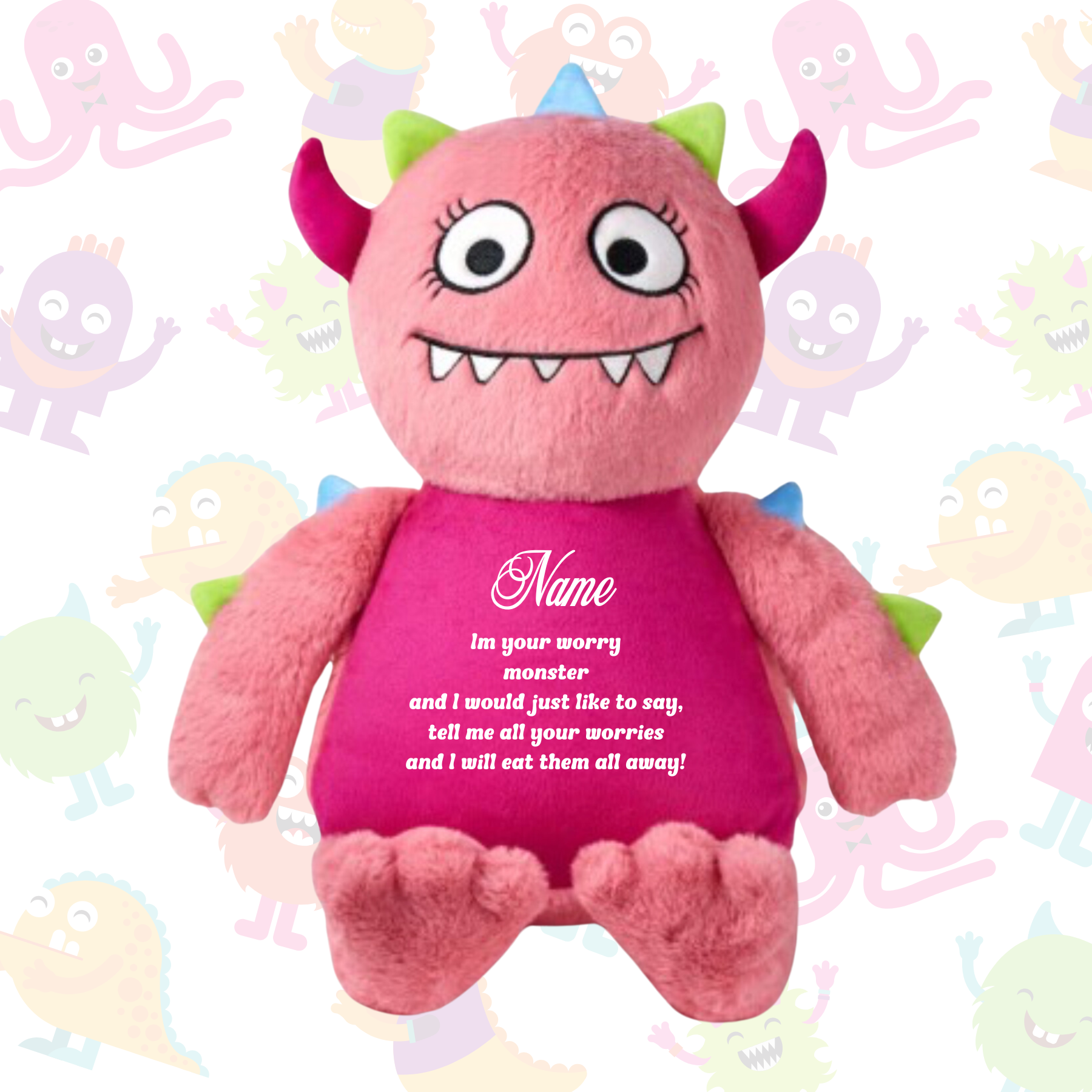 This 42cm high Worry Monster comfort bear comes in pink or blue, making it a personalized companion for your little one.